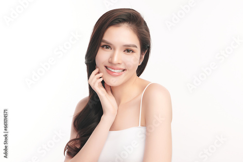 Beautiful smile young asian woman. White teeth on white background, Dental care. Dentistry concept.