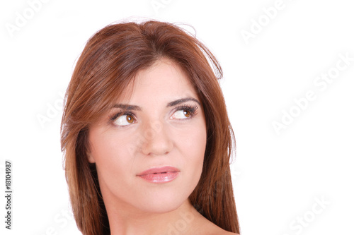 adult, attractive, background, bang, beautiful, beauty, blue, brunette, cheerful, chin, closeup, closeup, complexion, contact, copy, cute, down, eye, face, female, girl, gorgeous, grey, grey, grin, hair, hand, happiness, happy, joy, joyful, white, isolated, people, person, portrait, pretty, resting, skin, smiling, smooth, space, teeth, woman, young