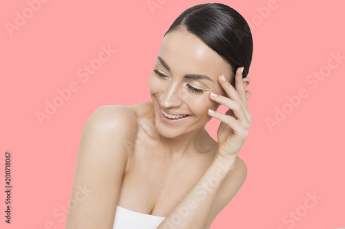 Beautiful smiling young woman with clean and fresh skin. Beauty and spa. Cosmetology. Spa treatments. Women Health