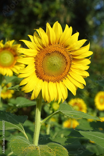 sunflower, flower, blossom, nature, yellow, flora, plant, pollen, bloom, day, closeup, fresh, morning, spring, springtime, summer, garden, small, detail, pattern, texture, orange, head, sunlight, botany, field, bud, beautiful, circle, green, natural, agriculture, bright, growth, biology, environment, outside, season, round, sunny, vibrant, colourful, meadow, harvest, park, plantation, farm, crop