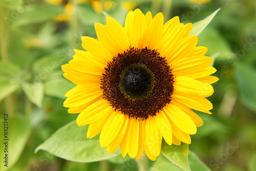 Beautiful sunflower in the garden on green background