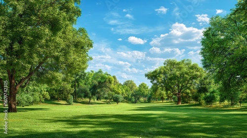 sunny, green, park, tree, blue skies, outdoors, nature, serene, peaceful, relaxing, fresh, lush, scenic, tranquil, idylli, landscape, sunny day, clear sky, beautiful, calm, calmness, foliage, sunlight, shade, greenery, botanical, flora, canopy, environment, forest, summer, daylight, open space, picturesque, blissful, verdant, growth, spectacular, beside, paseo, countryside, garden, vacant
