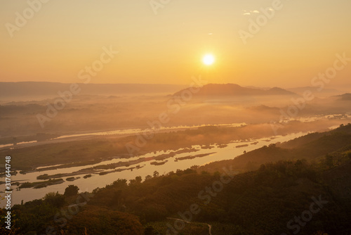 Beautiful sunrise at the Mekong river and foggy during sunrise