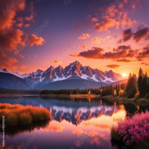 Beautiful sunset in the mountains