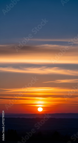 Beautiful sunset over the horizon with vibrant colors in the sky above