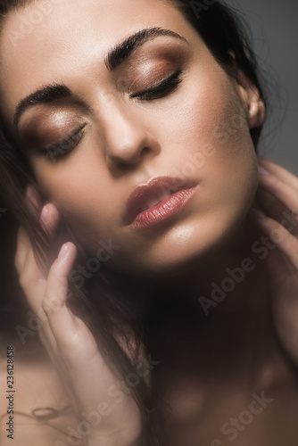 beautiful, person, elegance, girl, female, people, beauty, wet, drop, shower, caucasian, well-being, face, brunette, pretty, elegant, tender, woman, skincare, purity, attractive, posing, wellness, tenderness, bodycare, closed eyes, bodycare, studio shot, young adult, skincare