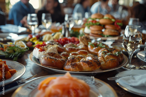 Beautiful thanksgiving dinner settings, holiday festive atmosphere dinner family gathering, generative ai image