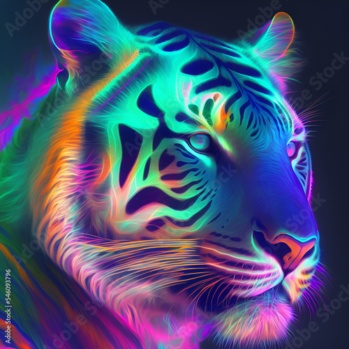 beautiful tiger with rainbow color, oil painting style, with beautiful eyes