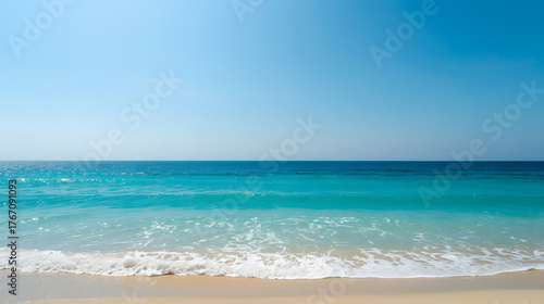 Beautiful Tropical beach with clear blue ocean and bright sky