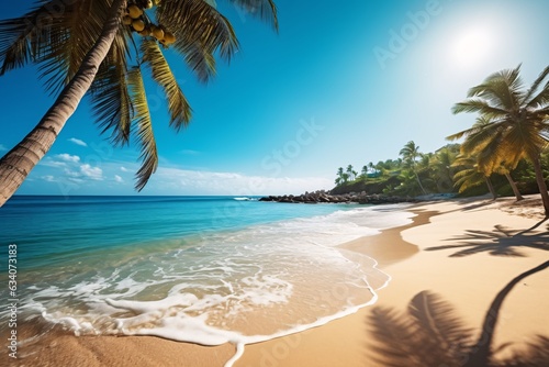 Beautiful tropical seascape. Panoramic view of the sea and sandy beach. Beautyful background. Beautiful ocean