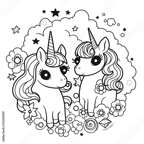 Beautiful Unicorn Coloring Page, Perfect Design For your Project and Creations, Ai Generative