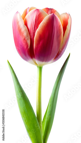 Beautiful vibrant Tulip isolated on transparent background, perfect for creative design, floral decorations, nature concepts, and springtime inspirations, high-quality close-up with vivid colors.