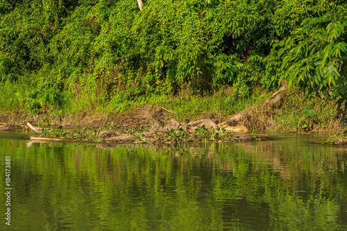 Beautiful view inside of the forest in Chitwan, Nepal.