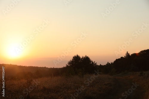 Beautiful view of sky over meadow at sunrise in morning