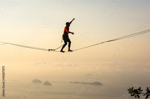 Beautiful view to male highliner on mountain over ocean islands