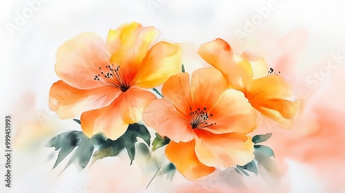 watercolor, orange flower, nature, plant, artwork, blossom, art, flower petals, green leaf, garden, creativity, decor, design, floral pattern, aesthetic, beauty, home decor, painting, art supply, blooming, hand-painted, flower, delicate, still life, inspiration, colours, floral arrangement, creative, spring, summer, botanical, illustration, color palette