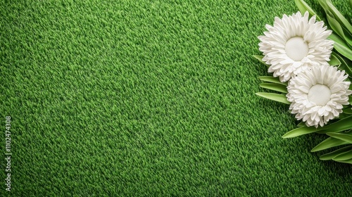 Beautiful White Flowers on Lush Green Grass Background for Summer Decor