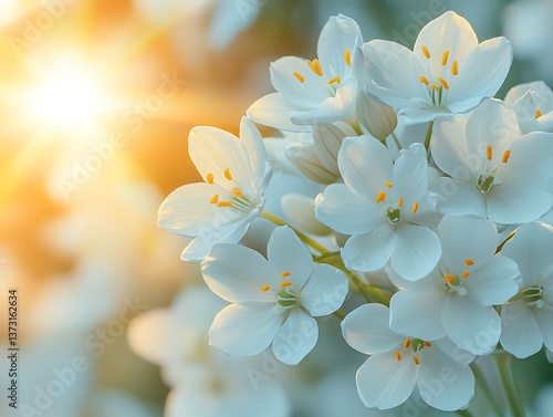flower, white, bloom, blossom, sunlight, nature, flora, spring, summer, plant, beauty, delicate, vibrant, fresh, bright, macro, detail, texture, stem, leaf, bud, garden, floral, botanical, arrangement, soft, gentle, serene, peaceful, purity, flocked, group, sharpened, composition, background, abstract, light, shadow, colours, yellow, stamen, seed, open, harmony, natural, growing, outdoors