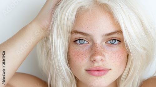 woman, blond, hair, freckle, face, portrait, closeup, beauty, fashion, model, girl, female, skin, eye, light, natural, pretty, attractive, gorgeous, expression, young, adult, caucasian, healthy, style, hair care, cosmetic, photo, image, studio