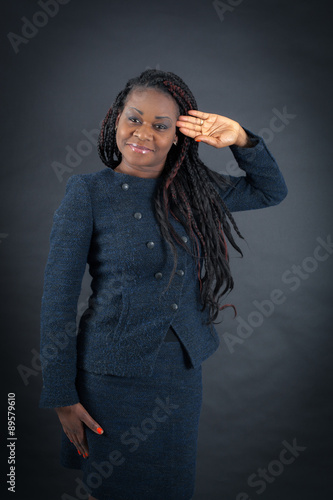 adult, african ethnicity, armed forces, army, black, black background, casual attire, copy space, dreadlocks, ethnic, ethnicity, female, front view, human hand, patriotism, people, saluting, serious, standing, studio shot, woman, youth culture, gesticulate, hierarchy, officer, order, soldier, subordinate