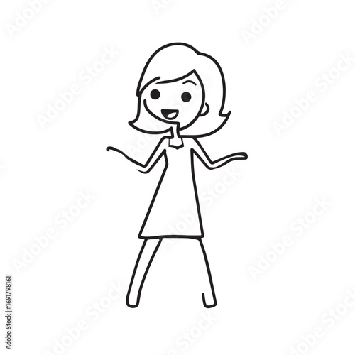 Beautiful Woman Doodle Black and White Illustration with Elegant Line Art and Artistic Hand Drawn Style
