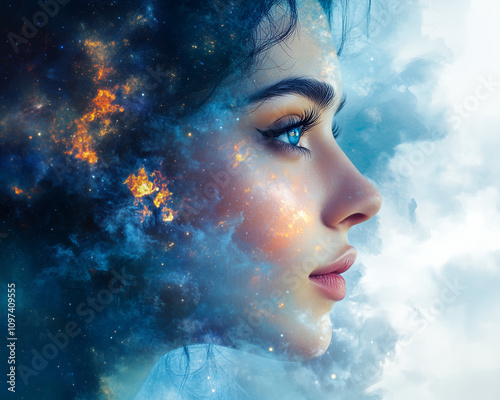 Beautiful woman exposed to space nebulae
