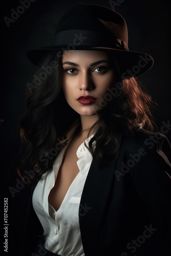 woman, hat, fashion, beauty, model, face, person, hair, black, lady, people, glamour, lip, studio, style, elegance, 1, closeup, make-up, brunette, retro, eye, elegant, dark, make-up