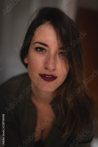 woman, make-up, elegant, dark, room, smiling, young, model, fashion, style, glamour, female, cosmetic, sensual, gorgeous, pretty, beautiful, lady, calm, tranquil, serene, peaceful, friendly, pleasure, glad, cheerful, happy, casual attire, trendy, brunette, cool, charming, lovely, cute, honed, vertical, indoor
