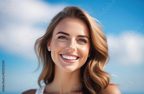 woman, selfie, blue skies, white cloud, smiling, red lipstick, summer, happy, sunny day, leisure, missy, fashion, trendy, stylish, sky background, joyful, lifestyle, fashionable, natural beauty, summer fun, carefree, happiness, beauty, face, person, model, looking, blond, closeup