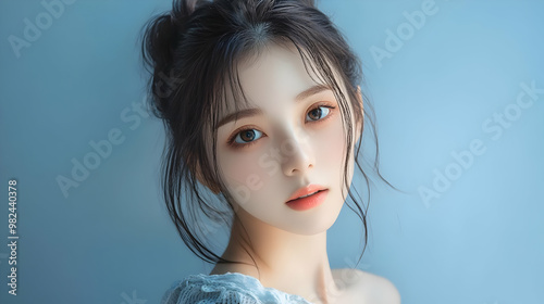 gentle, model, elegant, girl, beautiful, portrait, face, style, asian, dreamy, feminine, fashion, background, light, romantic, beauty, hair, eye, blue, soft, graceful, woman, make-up, delicate