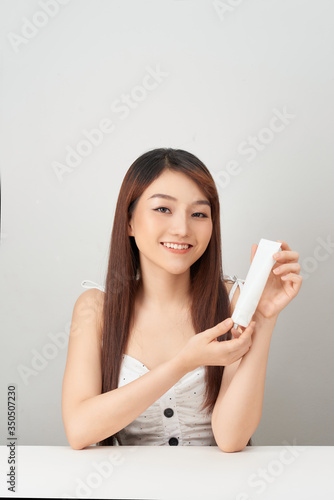 cosmetic, naturally, hand, woman, tube, model, beautiful, beauty, fresh, skin, cream, showing, product, holding, cosmetic, young, shop, girl, natural, attractive, female, posing, lady, straight, probe, portrait, gesture, asian, vietnamese, korean, japanese, chinese