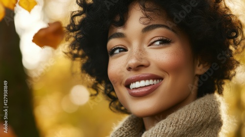 woman, smile, autumn, leaf, nature, portrait, happiness, joy, curly hair, sweater, warm tones, sunlight, confidence, carefree, fun, beauty, lifestyle, relaxation, female, emotion, seasonal, closeup, cheerful, expression, personality, soft focus, tranquil, youthful, serene, charming, cosy, friendly, natural light, timberland, engagement, candid, facial features, stylish, elegance, glowing, peaceful, enchanting, refreshing