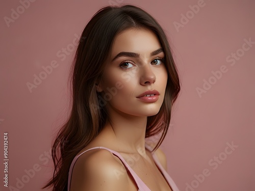 Beautiful woman wearing pink clothes isomated pink background