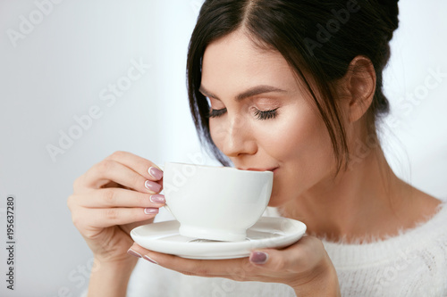 woman, cup, hot drink, drink, drinking, beautiful, beverage, hot, female, girl, happy, aroma, mug, smiling, young, portrait, attractive, lifestyle, cheerful, indoor, hand, face, cappuccino, fresh, nourishment, caffeine, energy, quality, drink, health, diet, healthy, thirst, thirsty, cafes, morning, cold, warming, warm, white, enjoying, smile, aromatic, gorgeous, brown, background, advertisement, advertising, brewed