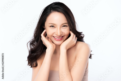 Beautiful Young Asian Woman with Clean Fresh Skin. Face care, Facial treatment, Cosmetology, beauty and healthy skin and cosmetic concept .woman beauty skin isolated on white background