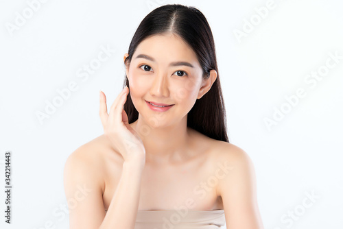Beautiful Young Asian Woman with Clean Fresh Skin. Face care, Facial treatment, Cosmetology, beauty and healthy skin and cosmetic concept, woman beauty skin isolated on white background