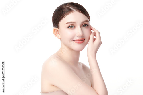 Beautiful young asian woman with clean fresh skin on white background, Face care, Facial treatment, Cosmetology, beauty and spa, Asian women portrait.