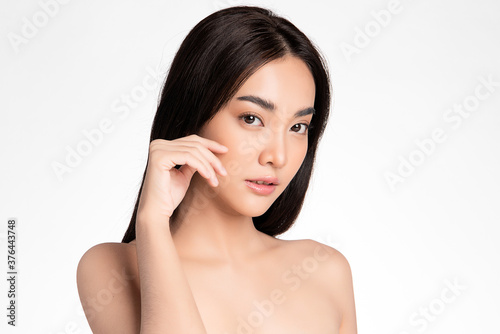 Beautiful Young asian Woman with Clean Fresh Skin on white background, Face care, Facial treatment, Cosmetology, beauty and spa, Asian women portrait