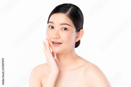 Beautiful young asian woman with clean fresh skin on white background, Face care, Facial treatment, Cosmetology, beauty and spa, Asian women portrait