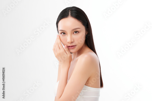 Beautiful young asian woman with clean fresh skin on white background, Face care, Facial treatment, Cosmetology, beauty and spa, Asian women portrait