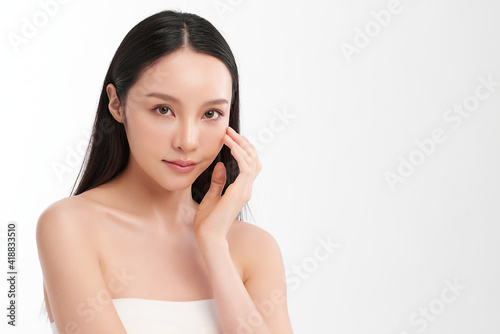 Beautiful young asian woman with clean fresh skin on white background, Face care, Facial treatment, Cosmetology, beauty and spa, Asian women portrait