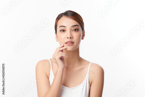 Beautiful young asian woman with clean fresh skin on white background, Face care, Facial treatment, Cosmetology, beauty and spa, Asian women portrait