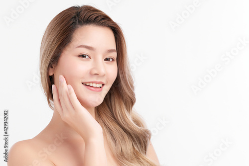Beautiful young asian woman with clean fresh skin on white background, Face care, Facial treatment, Cosmetology, beauty and spa, Asian women portrait