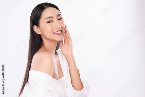 Beautiful young asian woman with clean fresh skin on white background, Face care, Facial treatment, Cosmetology, beauty and spa, Asian women portrait.