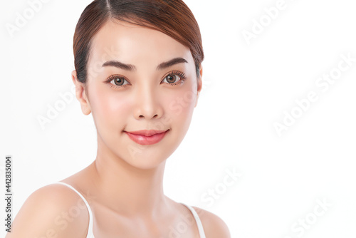 Beautiful young asian woman with clean fresh skin on white background, Face care, Facial treatment, Cosmetology, beauty and spa, Asian women portrait.