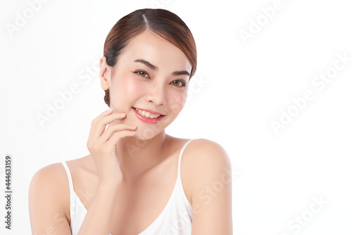 Beautiful young asian woman with clean fresh skin on white background, Face care, Facial treatment, Cosmetology, beauty and spa, Asian women portrait.