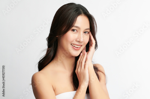 Beautiful young asian woman with clean fresh skin on white background, Face care, Facial treatment, Cosmetology, beauty and spa, Asian women portrait.