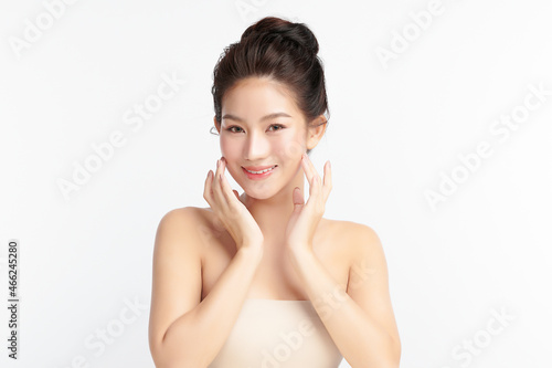 Beautiful young asian woman with clean fresh skin on white background, Face care, Facial treatment, Cosmetology, beauty and spa, Asian women portrait.