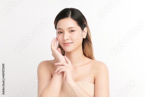 Beautiful young asian woman with clean fresh skin on white background, Face care, Facial treatment, Cosmetology, beauty and spa, Asian women portrait.