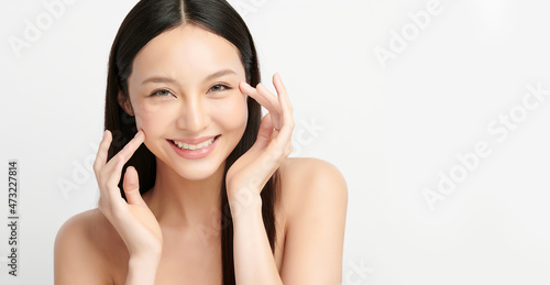 Beautiful young asian woman with clean fresh skin on white background, Face care, Facial treatment, Cosmetology, beauty and spa, Asian women portrait.